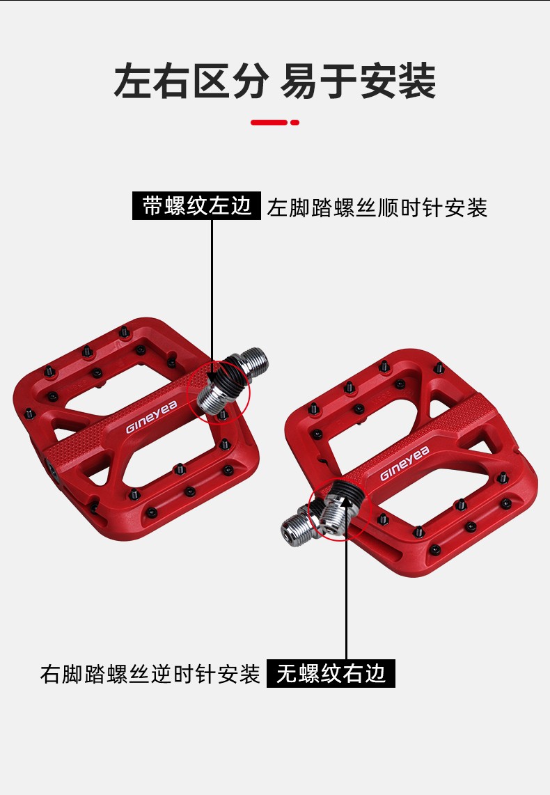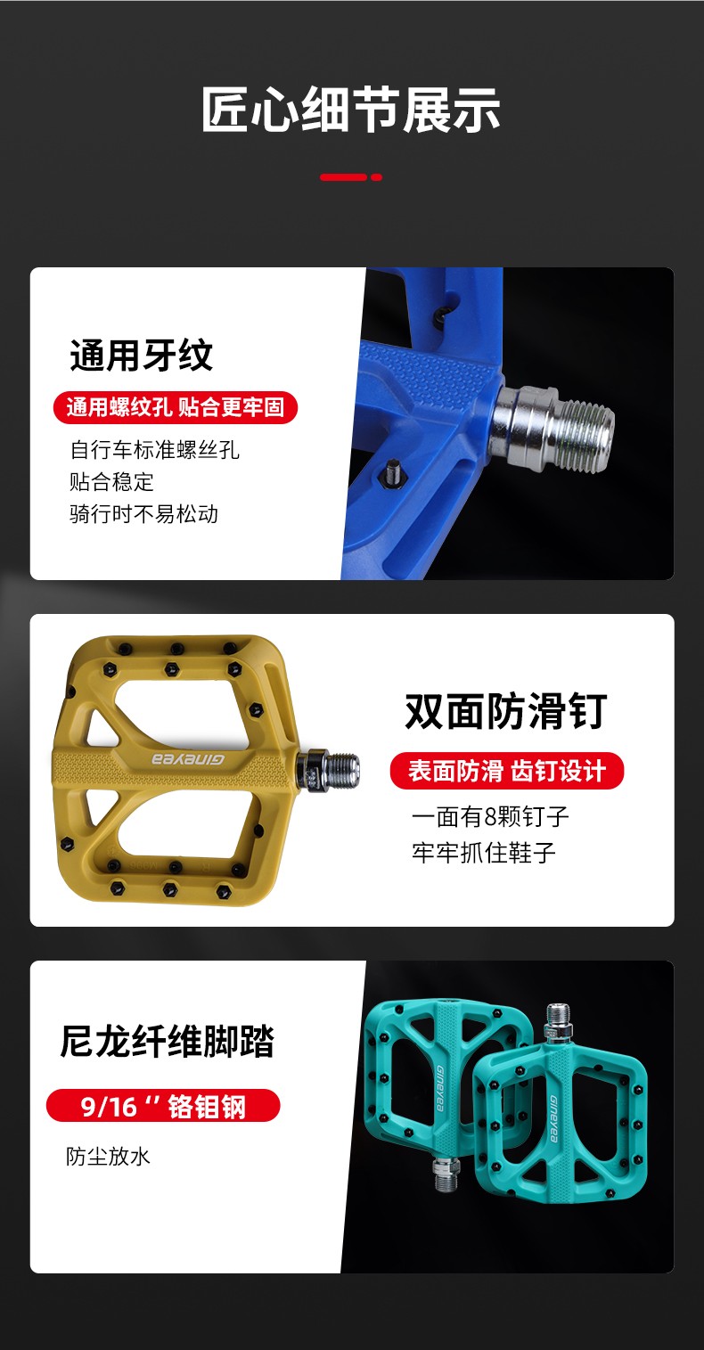 Gineyea碳纖維腳踏自行車(chē)公路車(chē)山地車(chē)防滑釘踩面鈦合金軸腳踏