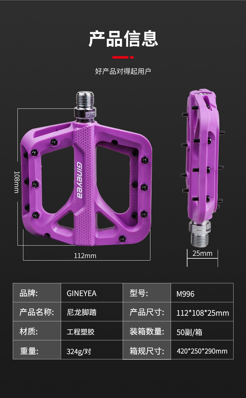 景曄腳踏M996山地自行車(chē)配件尼龍培林腳蹬寬面軸承騎行防滑腳踏板配件