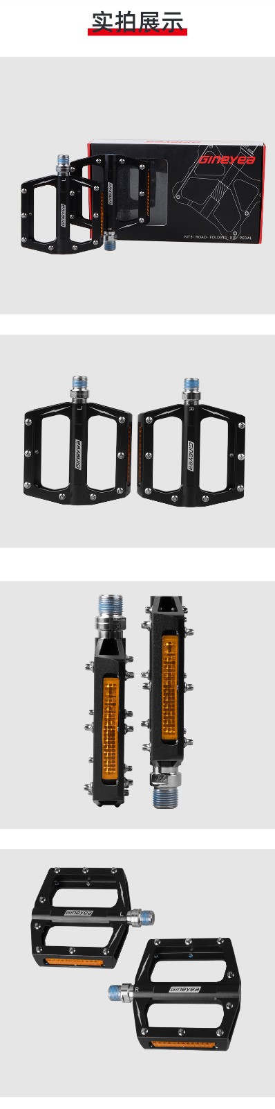 景曄自行車腳踏帶反光片公路車密封軸承腳蹬騎行鋁合金腳踏板配件
