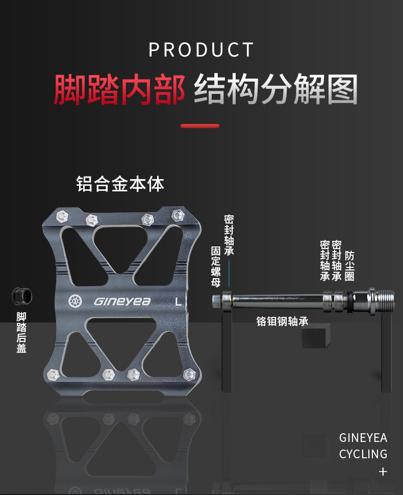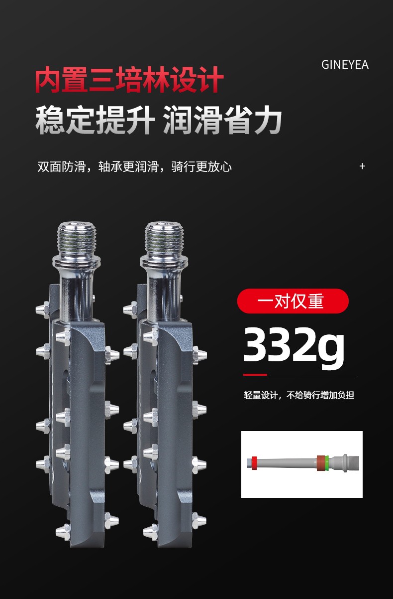 Gineyea碳纖維腳踏自行車(chē)公路車(chē)山地車(chē)防滑釘踩面鈦合金軸腳踏