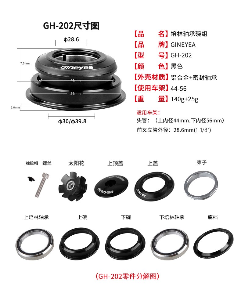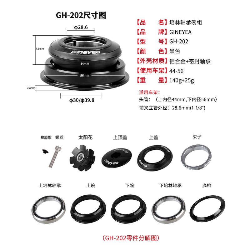 景曄202半隱藏1.5英寸44-56mm錐管培林超潤山地公路車頭碗組