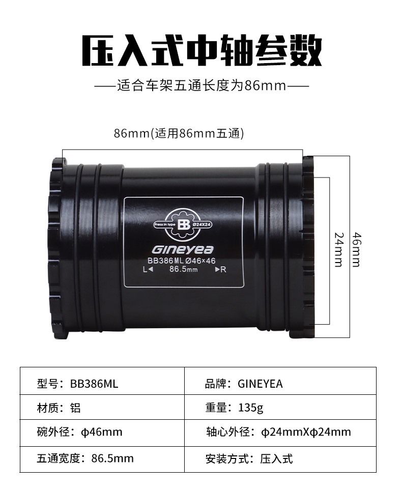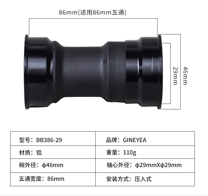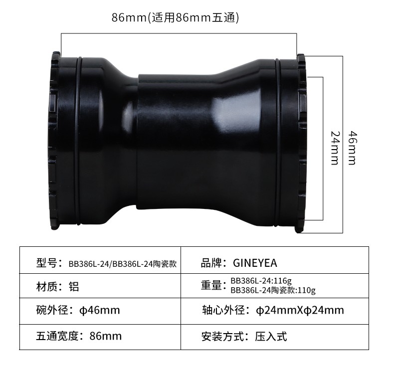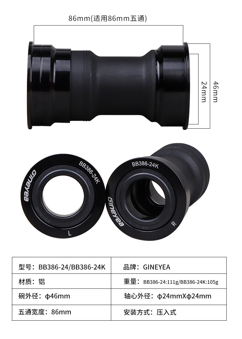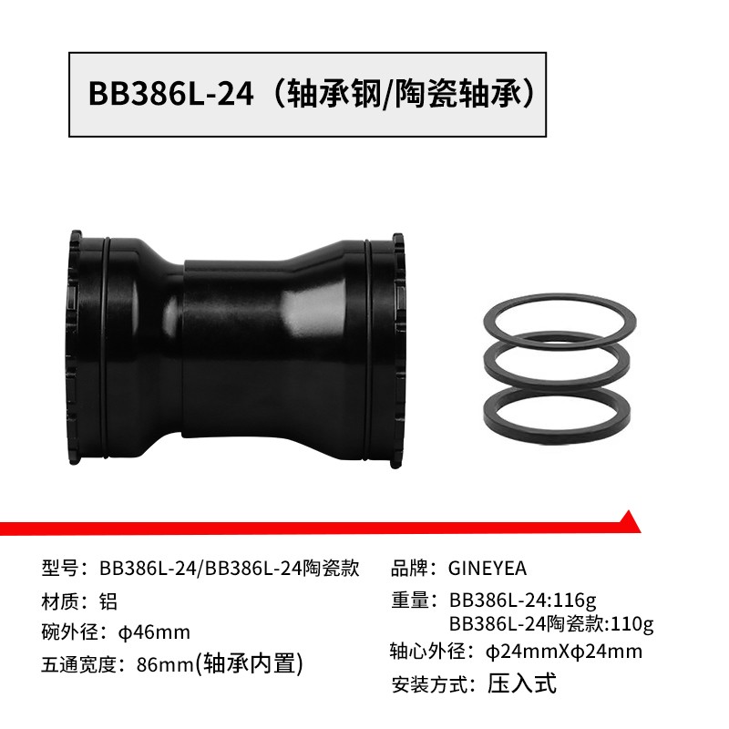 景曄386中軸山地公路自行車對(duì)鎖式中軸24/29中空一體牙盤壓入式