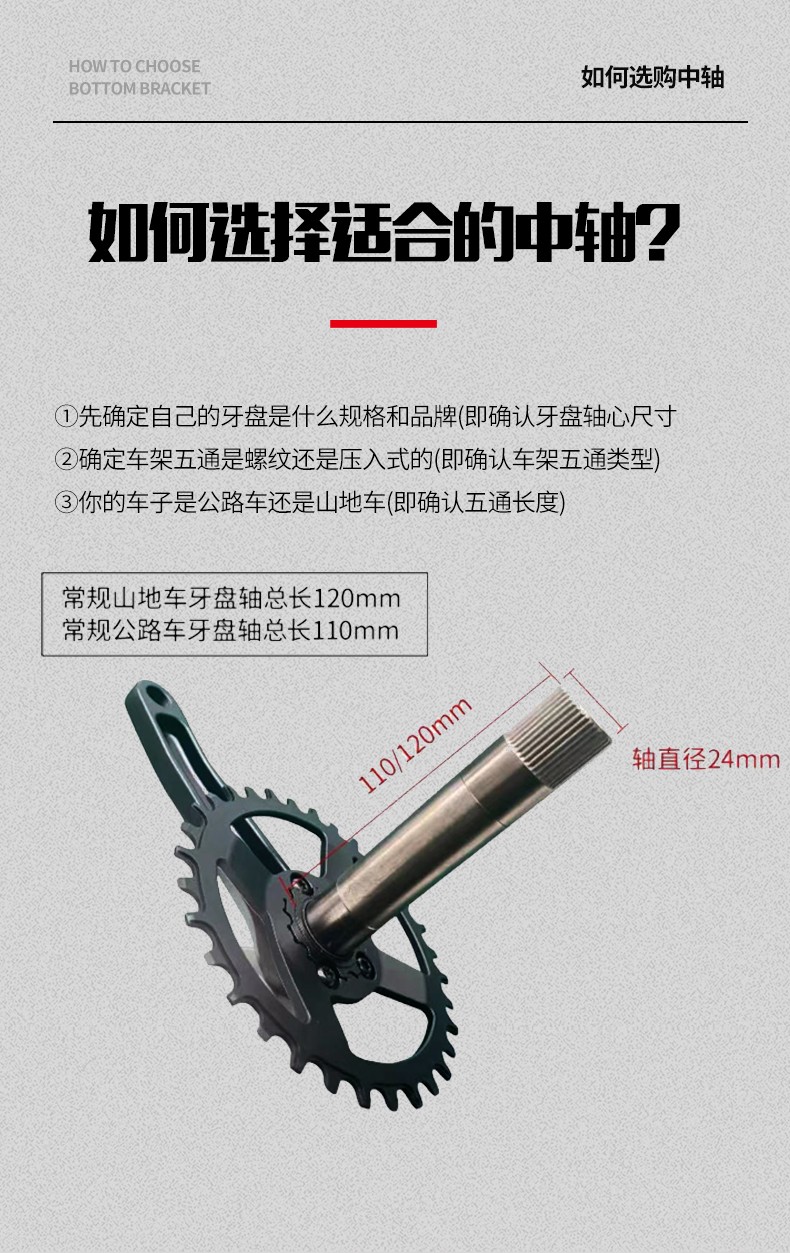 景曄山地自行車培林對(duì)鎖中軸中空一體牙盤BB中軸壓入式螺紋中軸
