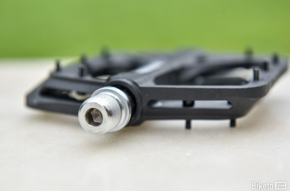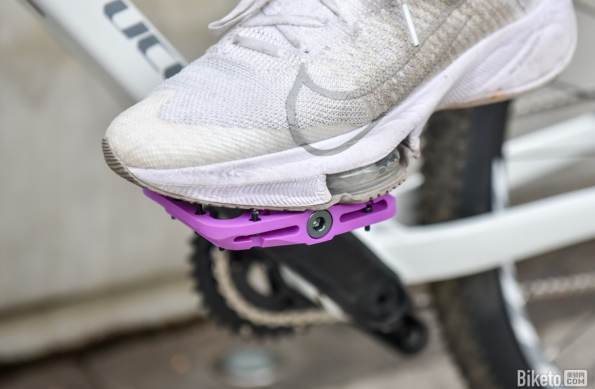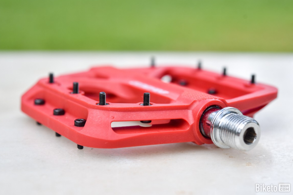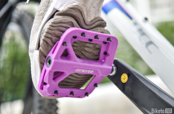 景曄M996自行車腳踏的每一面都有八顆可拆卸銷釘,可以杜絕腳底打滑的情況,大力搖車加速也不會踩空。