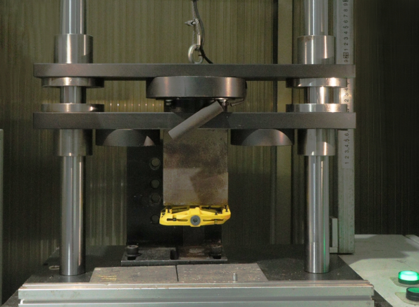 ▲自由落體沖擊測試,將15kg重物從400mm高度釋放,反復(fù)沖擊以檢驗質(zhì)量