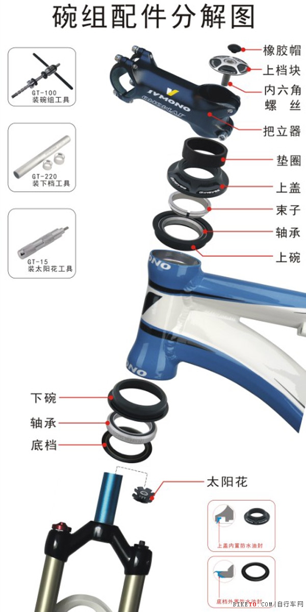 3.裝上下碗,根據(jù)各個(gè)廠家生產(chǎn)的車架頭管和公差可能會(huì)有偏差,在裝入上下碗的時(shí)候也有松緊,大部分都是需要用裝碗工具 ,如圖1。