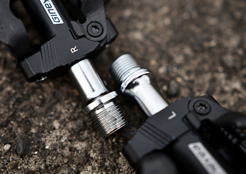 細心的小伙伴們其實已經(jīng)發(fā)現(xiàn)了,L鎖踏的軸心處有經(jīng)過特殊處理多了一圈凹槽,即便是鎖踏本體L字樣漆磨損后,也能輕易分辨左右。(左右不相同的軸心標記)