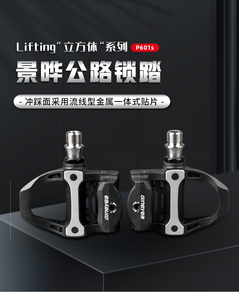 景曄新款P601S公路車自鎖腳踏炭纖維公路鎖踏 鈦合金軸心騎行踏板211克