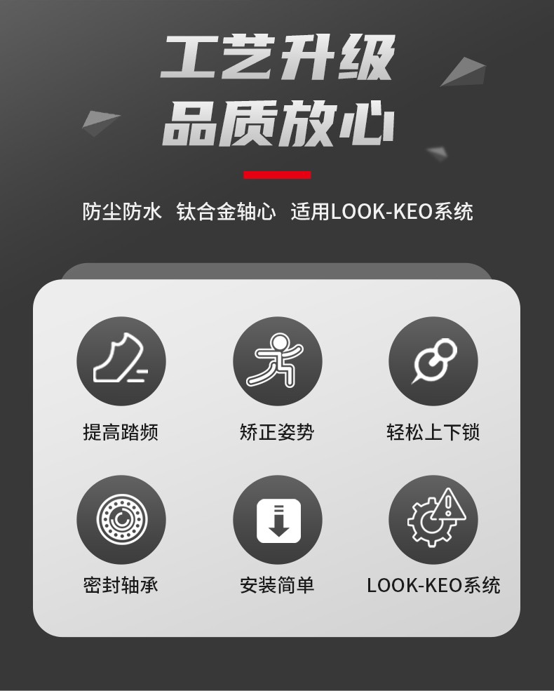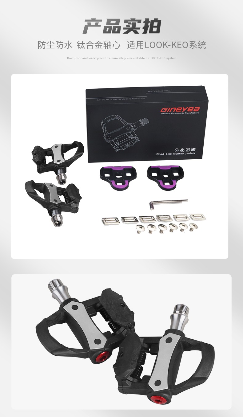 景曄公路車鎖踏三培林碳纖鈦軸自行車腳踏兼容Look系統(tǒng)附鎖片配件